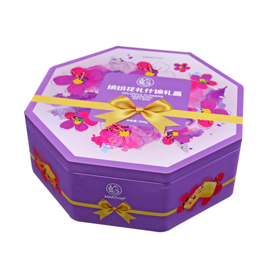 This big octagonal tin box is suitable for cookies, biscuits packaging.