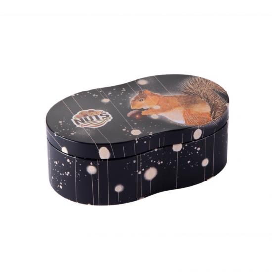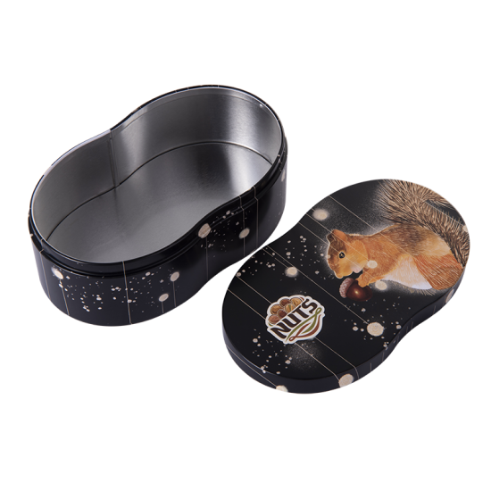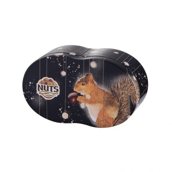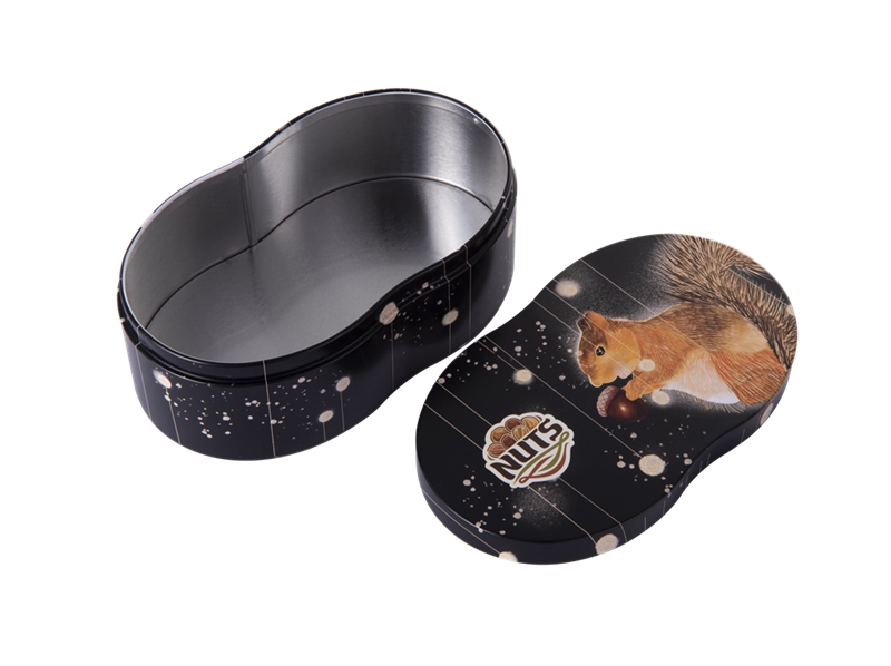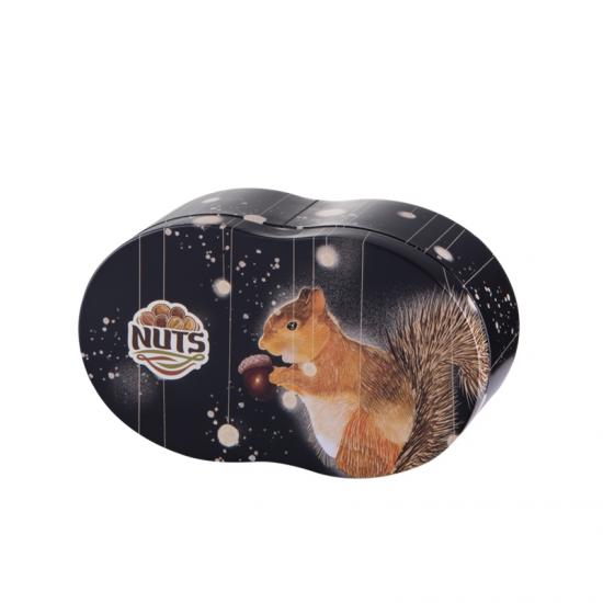 This is a cute nut shaped tin box. We have many tin boxes with special shapes, which are environmentally friendly and recyclable, can add value to your brands and products beyond your imagination.