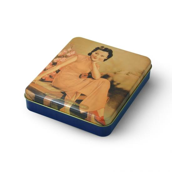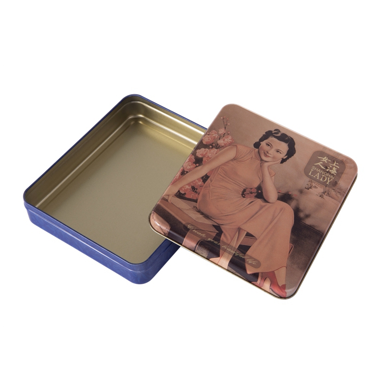 A: Tin box printing is an offset printing process using CMYK or PANTONE colors. First print on large pieces of tinplate, and then cut into small pieces to make tin boxes of different shapes and sizes based on different molds.