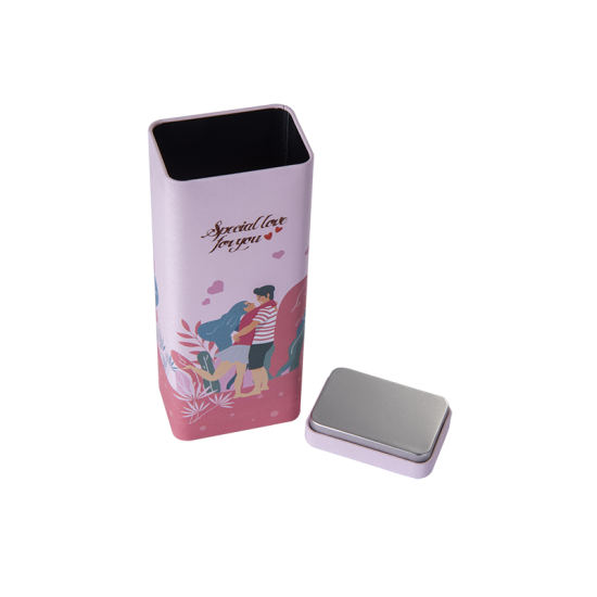 This is a tall rectangular tin box with double-layer lid.