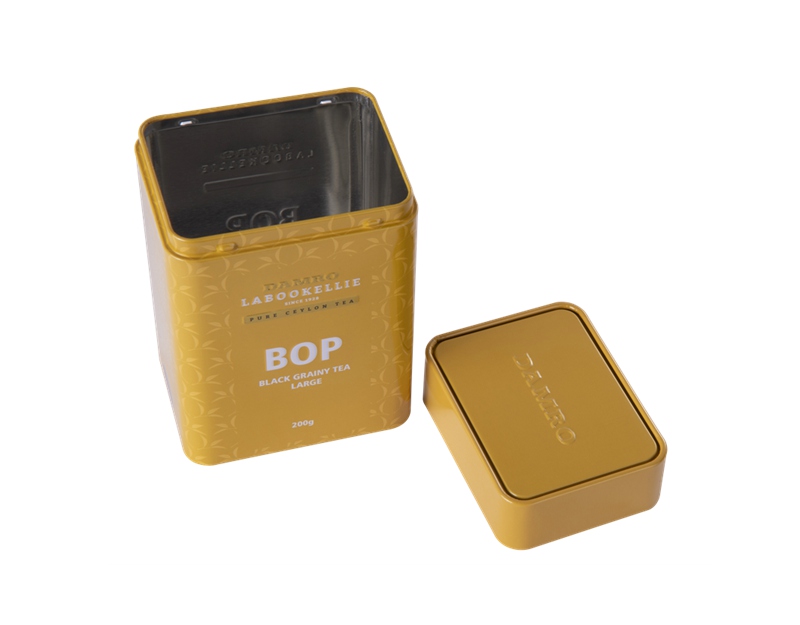 Rectangular tea storage tin can